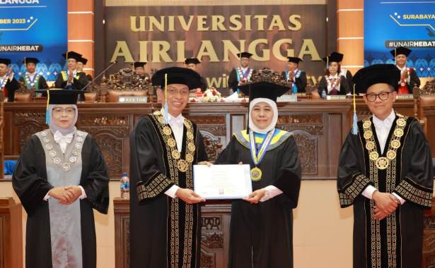 SURABAYA, SURYAKABAR.com – Fakultas Ekonomi dan Bisnis Universitas Airlangga (Unair) Surabaya menganugerahi Gubernur Jatim Khofifah Indar Parawansa gelar Doktor Honoris