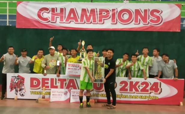 SIDOARJO, SURYAKABAR.com – Tim futsal putra SMAN 1 Wonoayu merebut juara turnamen futsal Delta Cup 2024 Sidoarjo, setelah di final