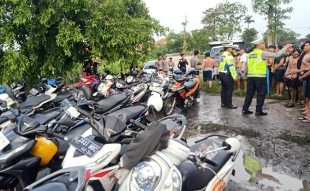 SIDOARJO, SURYAKABAR.com – Personel Satlantas Polresta Sidoarjo menggerebek ajang balap liar di Jalan Arteri Baru Porong, Sabtu (16/3/2024). Sebanyak 105